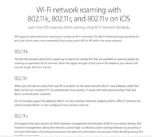 WiFi roaming standarder Her er en fin artikkel av Apple om standarder for håndtering av wifi roaming mellom aksesspunkter. https://support.apple.com/en-us/HT202628